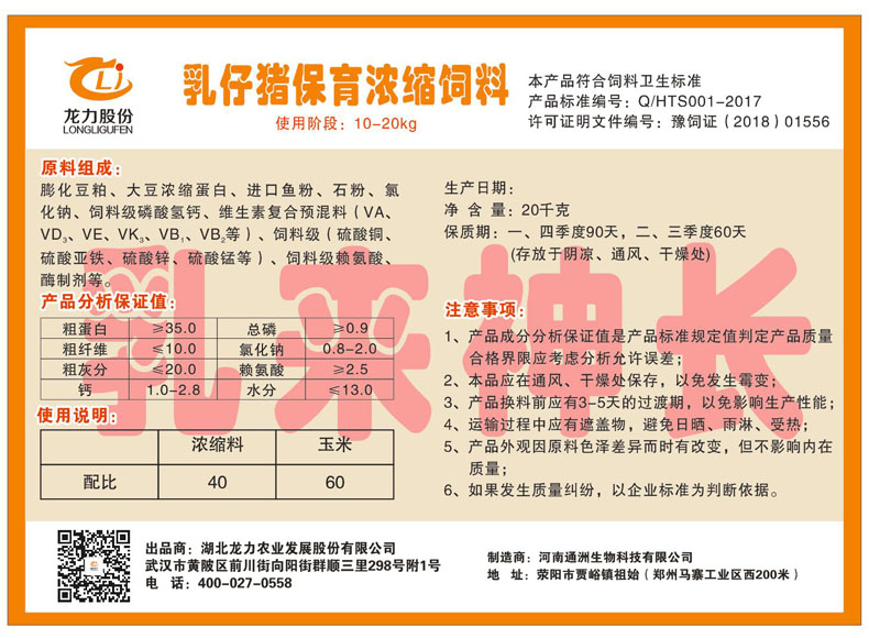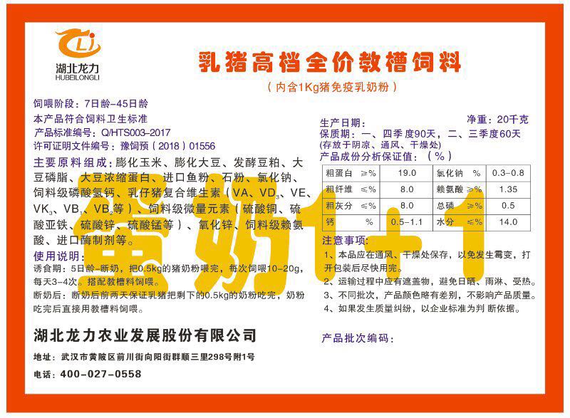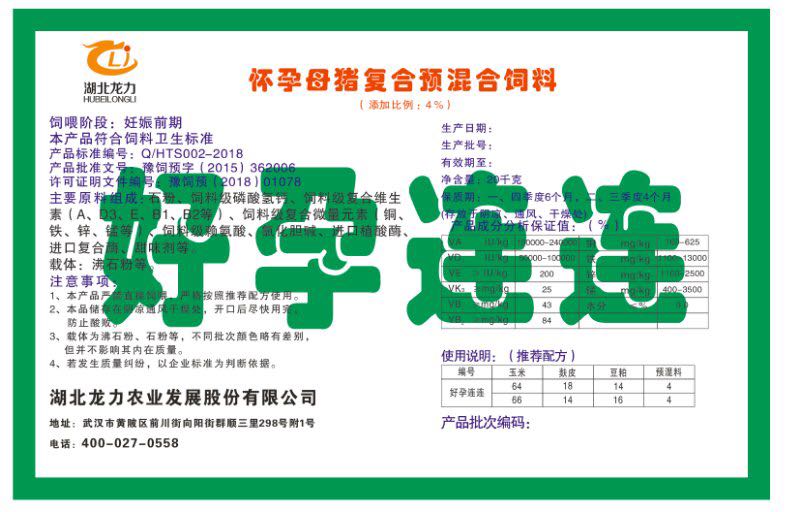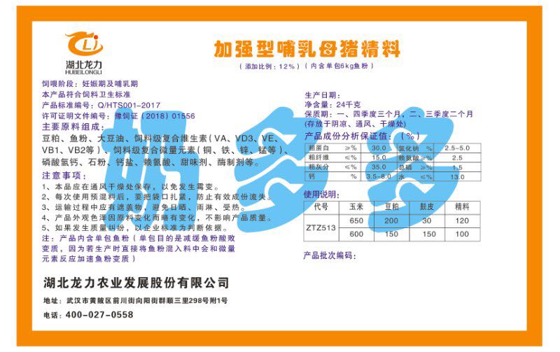 湖北龍力農(nóng)業(yè)發(fā)展股份有限公司坐落于武漢市黃陂區(qū)前川街向陽街群順三里298號附1號。公司成立于2014年6月,公司自成立以來把“創(chuàng)全球最大養(yǎng)豬綜合服務(wù)”為企業(yè)愿景。致力于打造教保料品牌”作為公司發(fā)展的明確目標(biāo)。公司一直致力于豬營養(yǎng)的研究和開發(fā),積極與國內(nèi)外高校和科研機(jī)構(gòu)合作,推廣養(yǎng)豬技術(shù)、動物營養(yǎng)新概念,向世界農(nóng)牧企業(yè)學(xué)習(xí)與合作。公司采用國內(nèi)先進(jìn)的生產(chǎn)工藝,選擇高精度電子配料秤,高均勻度、無殘留混合機(jī)等先進(jìn)設(shè)備....